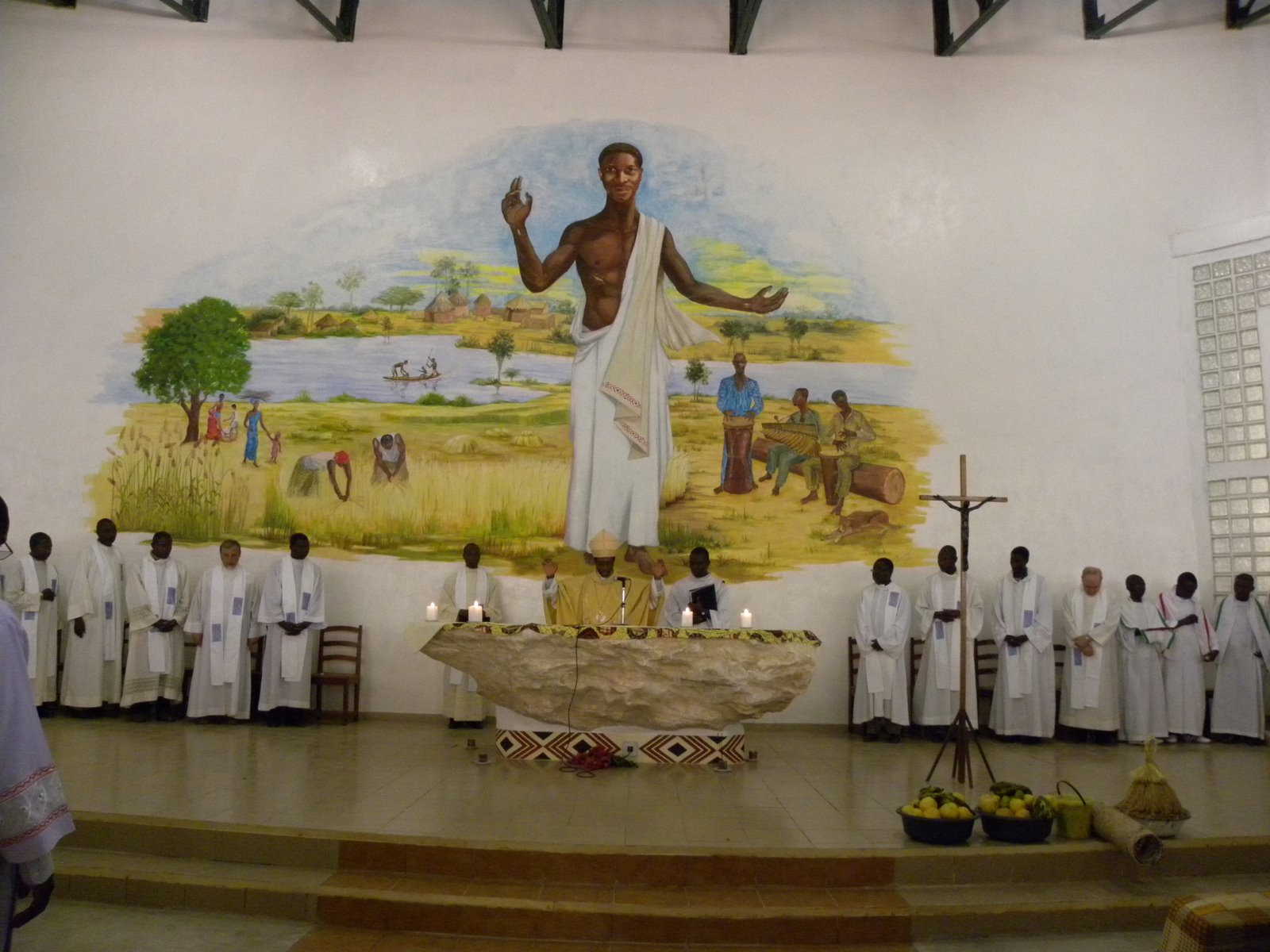 ¿Cómo fue? Miguel A. Sebastian, Obispo de Laï en el Chad, me hizo una propuesta el pasado verano verano, tentadora y muy dificil de rechazar, pintar un Cristo Resucitado negro en  la catedral  que estan terminando de construir y se inauguró el 28 de noviembre. Un proyecto contemplado hace 10 años y puesto en marcha este curso.