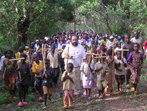Algunas misiones tienen suerte de sólo tener que alargar la mano para agarrar un pescado porque estan al borde del río Oubangui. Otros lo tienen más crudo. En Gambo, en plena sabana, la carne es rara. Y el corazón no está siempre lleno al 100% pues la tentación del desaliento está al borde del camino. En Tokoyo, la segunda parroquia de Bangassou, no queda un sólo coche ni una moto y tienen 40 capillas. Padre Augustin, recien ordenado en Agosto, fué a pié (60 Km) a la Pascua a Zabe con una de las hermanas del Salvador.. Mientras tengan salud podrán hacerlo. Mientras haya estrellas podremos caminar, incluso en la noche. Más que nunca unión de oraciones.