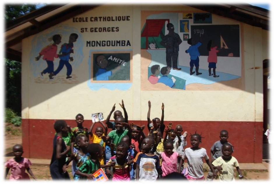 En varias ocasiones tuvimos que intervenir para que la escuela siguiera funcionando. Debido al mal funcionamiento de la escuela pública, las escuelas de la misión son cada vez más solicitadas por los padres de los niños y es así como poco a poco se llega a tener una escuela “privada” que acoge a buena parte de los niños de la zona dándoles preferencia a los niños pigmeos y huérfanos por ser los más vulnerables pero sin exclusión de ningún niño por motivo de pertenecer a una etnia determinada. Es así como era normal encontrar jugando a niños pigmeos con musulmanes, con mondjombo, mbaka, etc.