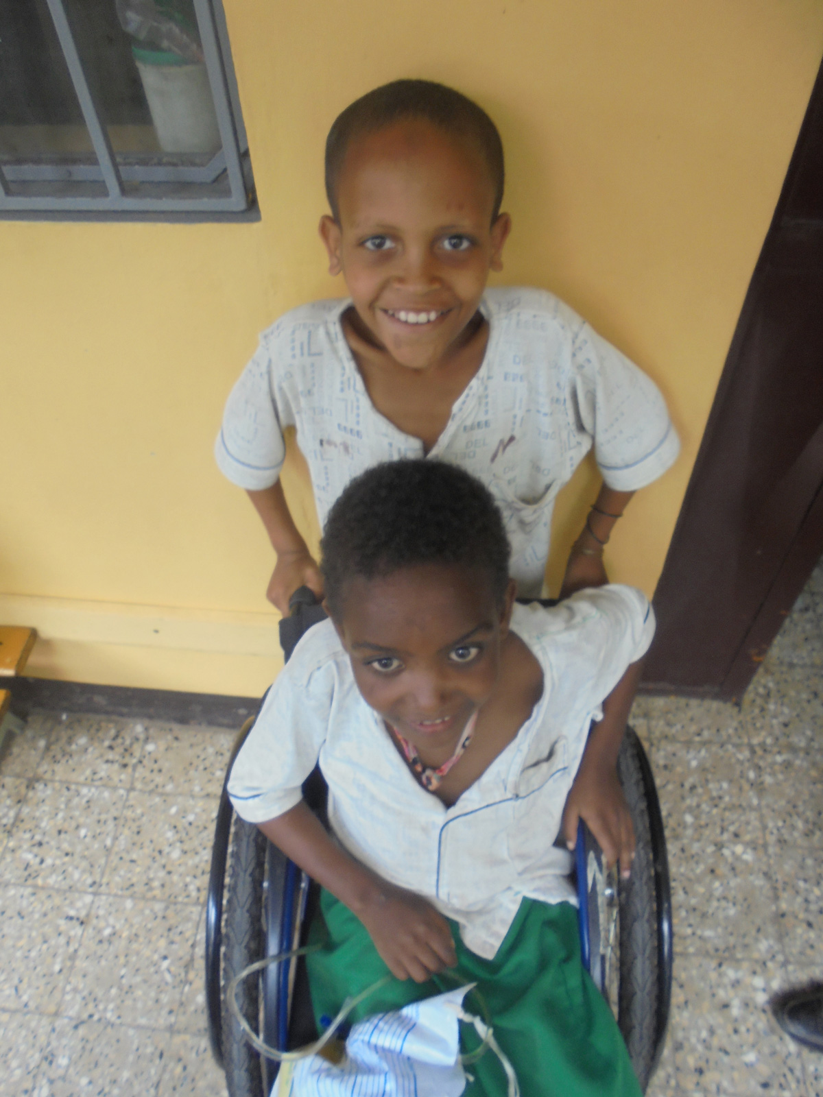 Lo único que pudimos hacer es tratar de conseguirle una silla de ruedas para que pueda ser más independiente. Hay una organización en Awassa que distribuye equipos ortopédicos, así que junto con Aman fuimos allí, llenos de esperanza. Lamentablemente no pudieron ayudarnos. Estaba tan decepcionado… Así que tuvo que regresar a casa sin nada…