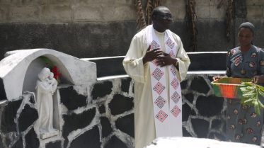 Después de la celebración, la hermana a cargo del orfanato, invitó al padre Celestin a bendecir la cueva recién construida, así que todos acompañamos a la cueva para la bendición. Fue un momento de gracia para todos.