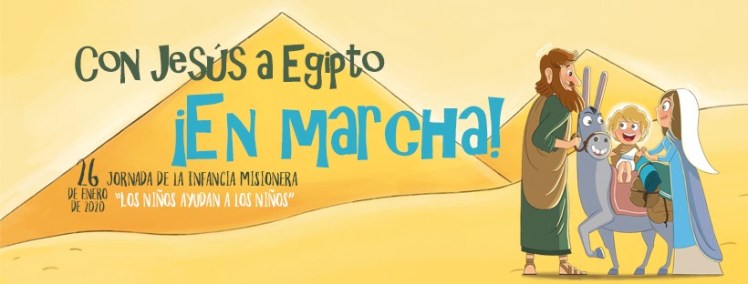 “Con Jesús a Egipto”. Este año vemos a Jesús Niño refugiado en Egipto, viviendo en carne propia el sufrimiento y la injusticia que afligen a los más débiles. Desde el principio Jesús conoce la oposición y la persecución, y también desde estos primeros momentos manifiesta cómo Dios opta por los pequeños y nos libera del mal (cf. CCE 530). Esta es la gran esperanza que nos mueve a quienes somos enviados a transmitir al mundo el amor de Dios, como hacen los misioneros.