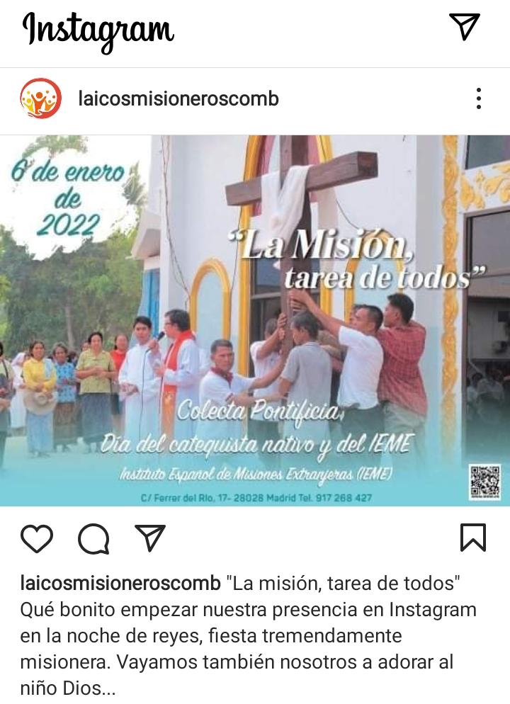 «La misión, tarea de todos» Qué bonito empezar nuestra presencia en Instagram en la noche de reyes, fiesta tremendamente misionera. Vayamos también nosotros a adorar al niño Dios…
