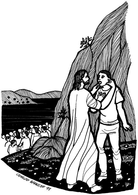 En aquel tiempo, dejó Jesús el territorio de Tiro, pasó por Sidón, camino del lago de Galilea, atravesando la Decápolis. Y le presentaron un sordo que, además, apenas podía hablar; y le piden que le imponga las manos. Él, apartándolo de la gente a un lado, le metió los dedos en los oídos y con la saliva le tocó la lengua. Y, mirando al cielo, suspiró y le dijo: «Effetá», esto es «Ábrete». Y al momento se le abrieron los oídos, se le soltó la traba de la lengua y hablaba sin dificultad. Él les mandó que no lo dijeran a nadie; pero, cuanto más se lo mandaba, con más insistencia lo proclamaban ellos. Y en el colmo del asombro decían: «Todo lo ha hecho bien; hace oír a los sordos y hablar a los mudos.»