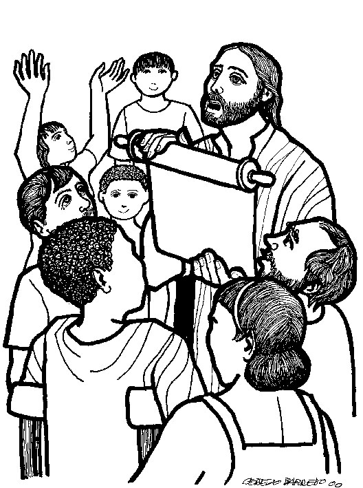 Y, enrollando el libro, lo devolvió al que le ayudaba y se sentó. Toda la sinagoga tenía los ojos fijos en él. Y él se puso a decirles: “Hoy se cumple esta Escritura que acabáis de oir.”