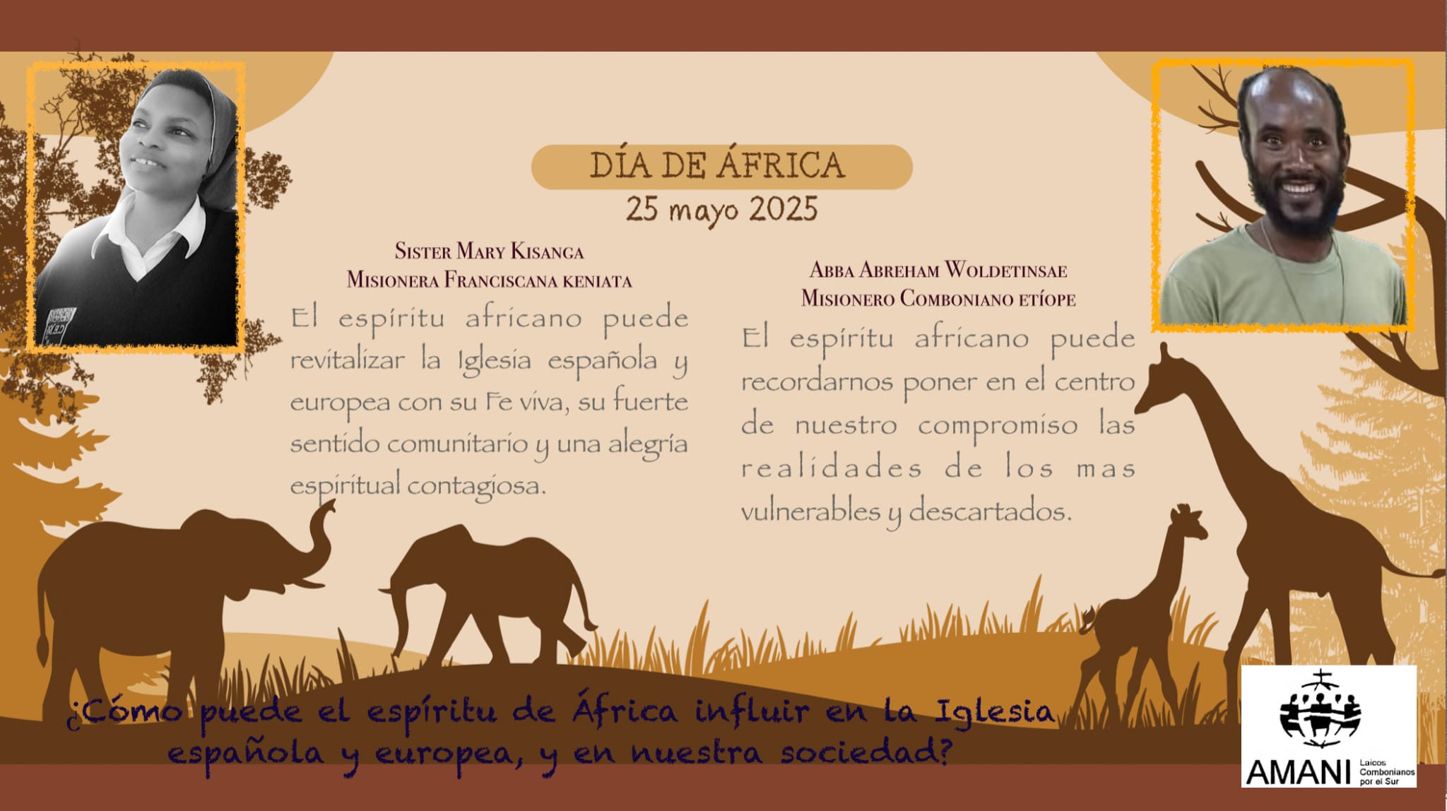 Celebramos hoy el Día de África, una ocasión para reafirmar nuestro compromiso misionero por África y sus pueblos. El mensaje de Daniel Comboni sigue siendo tan actual y necesario como entonces, porque la vida está encadenada en África, por falta de oportunidades, de derechos, por los intereses mercantilistas globales.