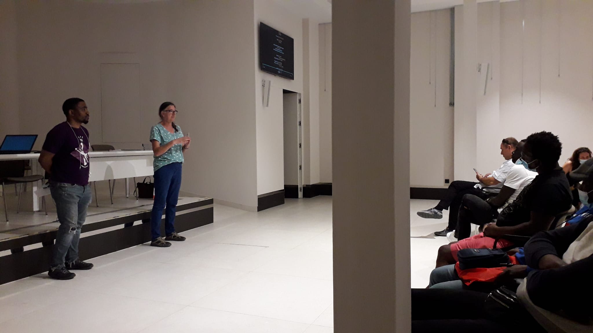 La proyección es parte de las actividades de la Semana de África en Madrid, organizada por más de 10 asociaciones, entre las que se encuentra REDES (de la que Amani-LMC es miembro) y la revista Mundo Negro. Quique Bayo, director de Mundo Negro, participó también en la presentación, que tuvo lugar en los locales del Servicio Capuchino para el Desarrollo-Sercade. La mayoría del público estaba compuesto por los jóvenes subsaharianos usuarios de este servicio, por lo que los diálogos transcurrieron mayoritariamente en francés.